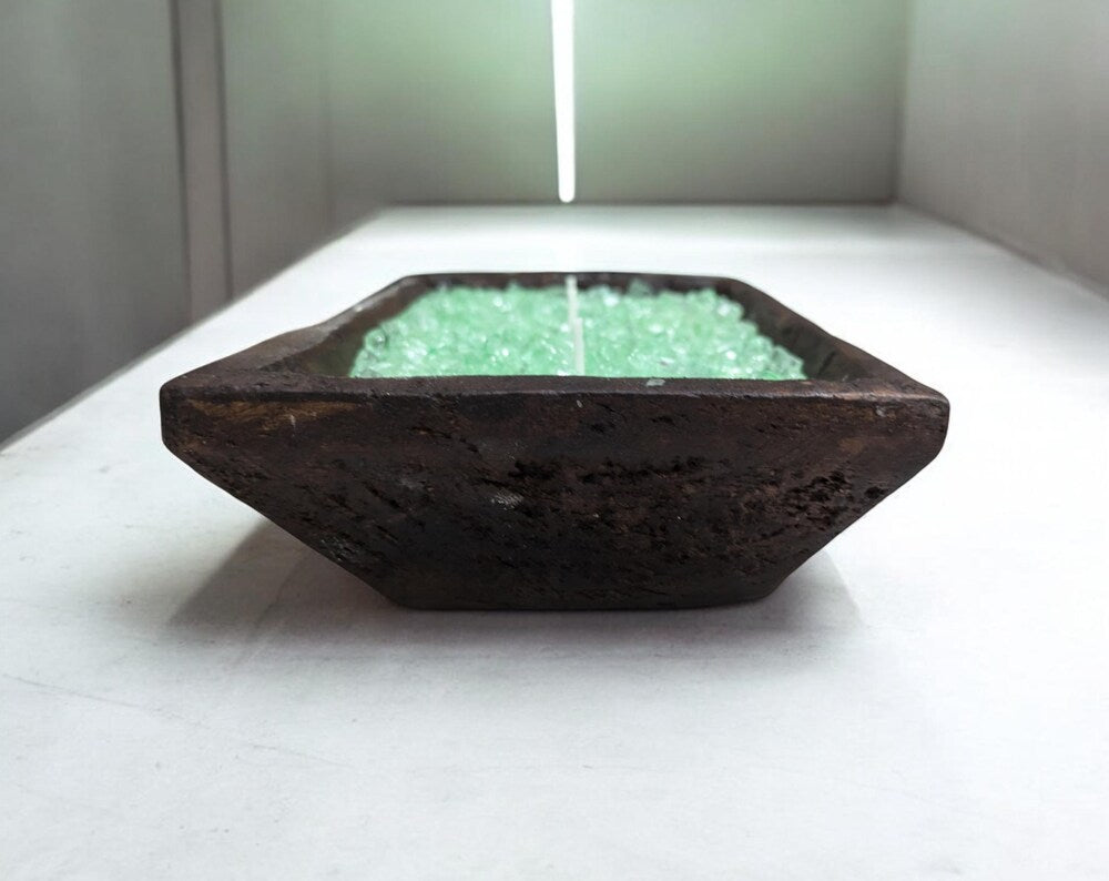 Aura Handcrafted Wooden Dough Bowl Candle – Light Green Soy Wax | Multi-Wick Wood Candle | Rustic Reusable Decor | Eco-Friendly Gift