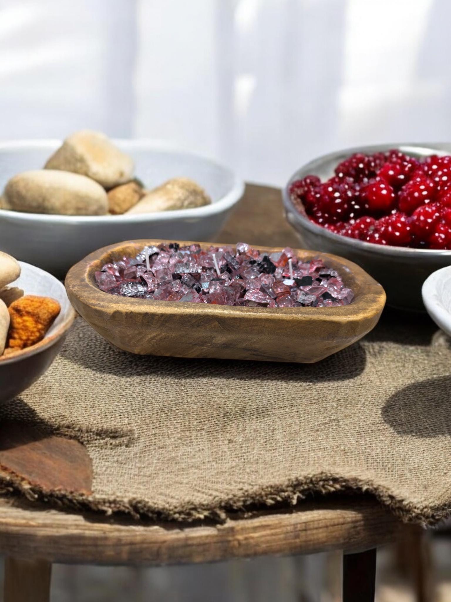 🪵 Medium boho-style carved wood bowl – each one unique and reusable