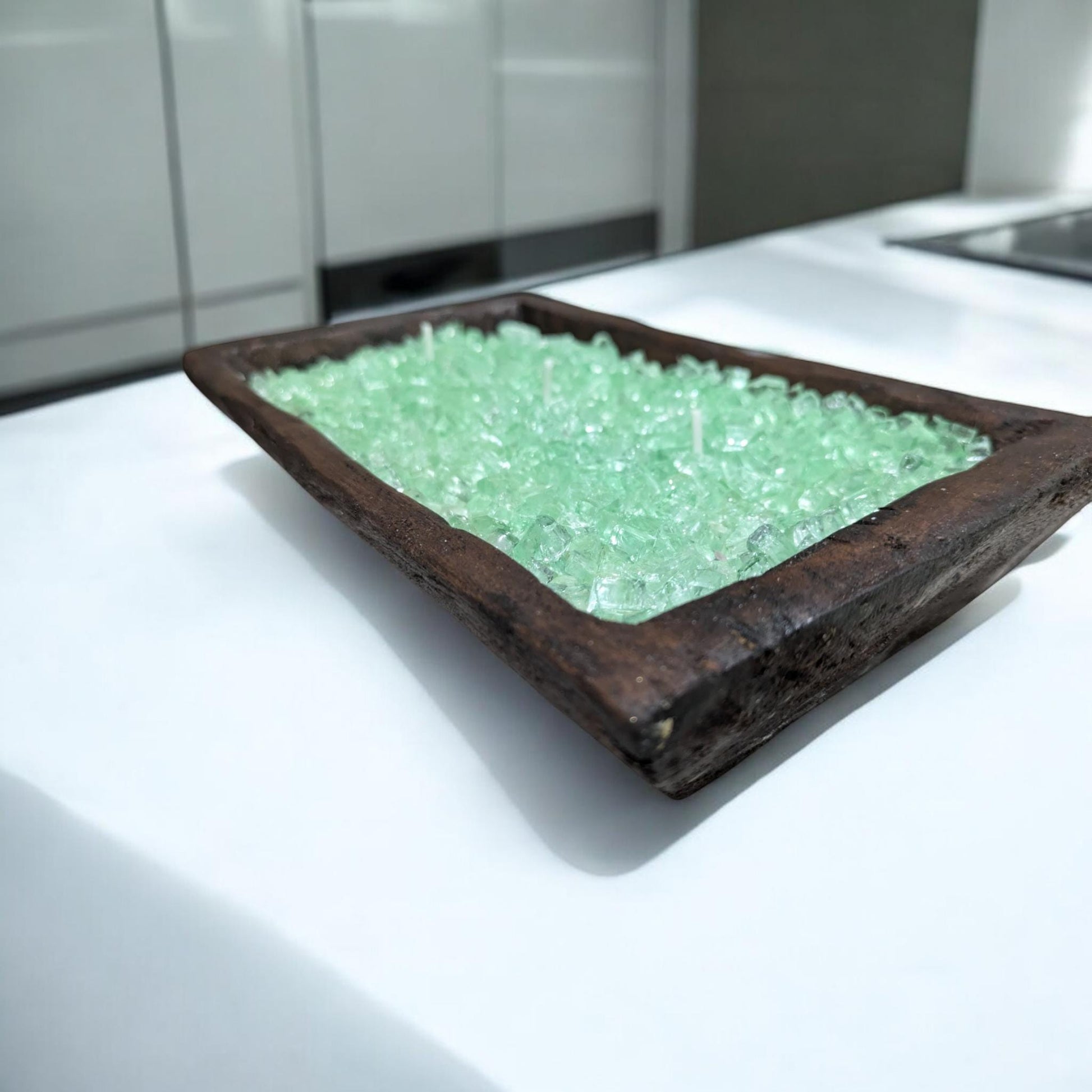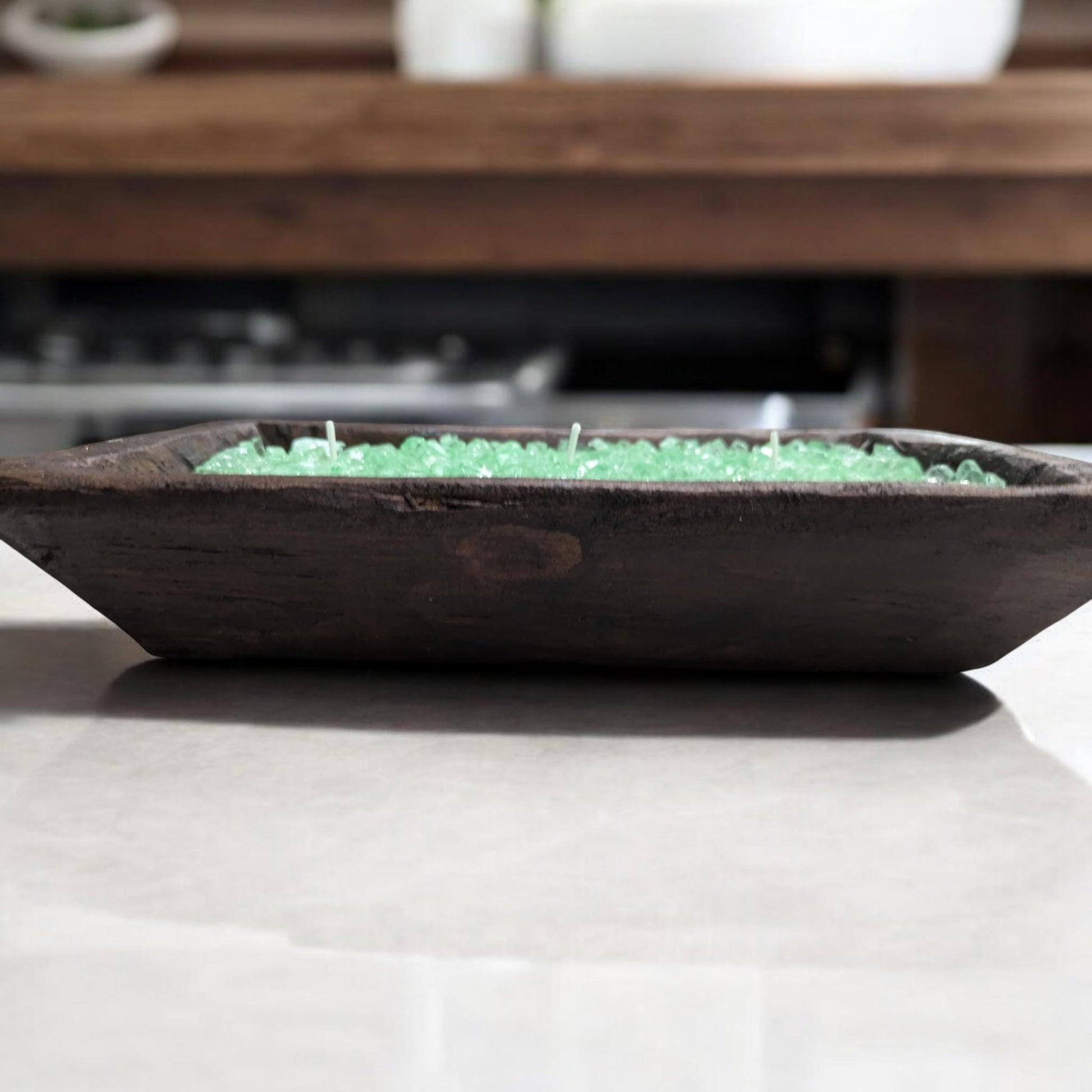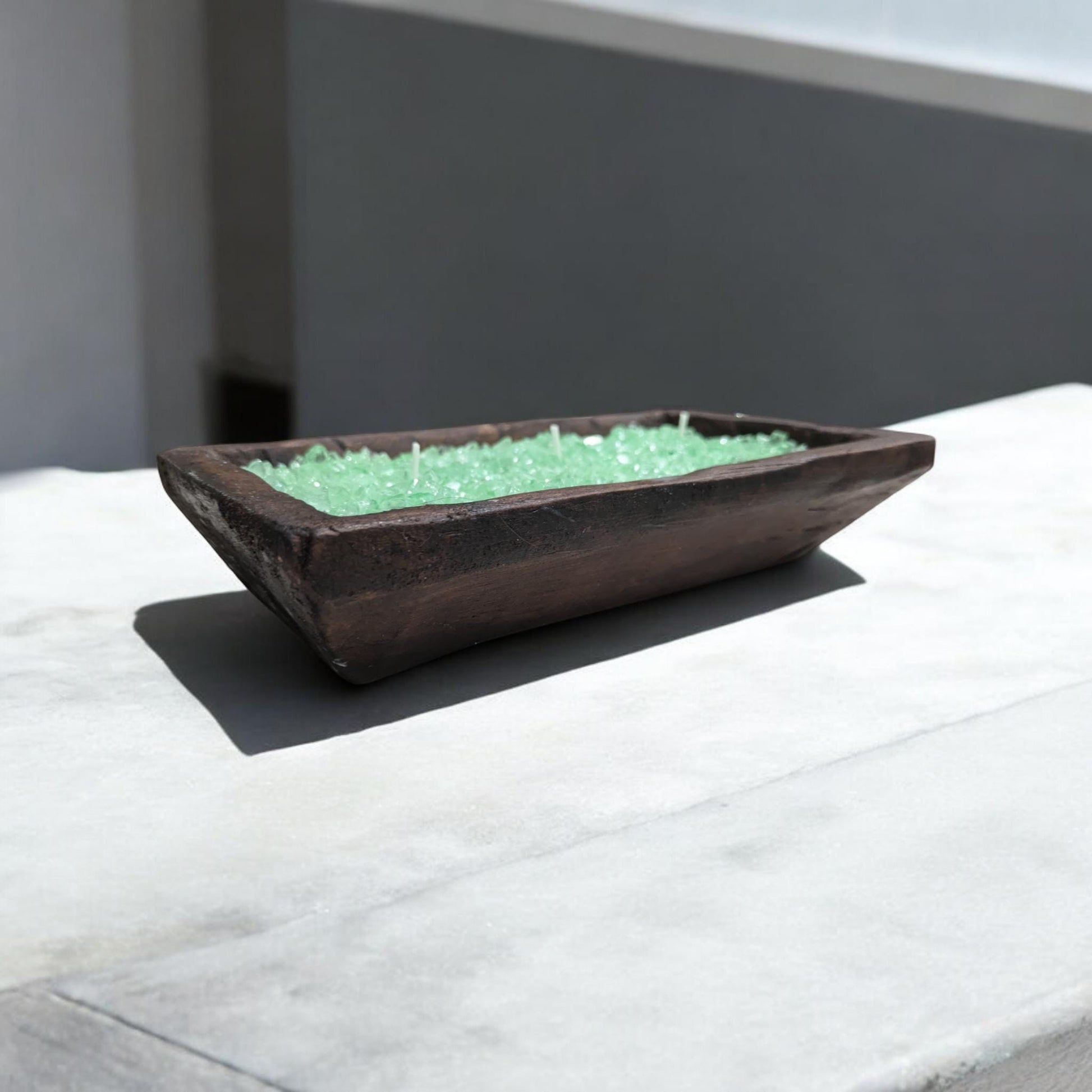 Warm, grounded, and artfully designed — the Aura FIREGLASS BOHO Dough Bowl Candle brings a touch of elemental glow to your space. Poured with 20 oz of clean-burning soy wax into a carved, medium-sized wooden dough bowl, this piece blends rustic charm with boho soul.
