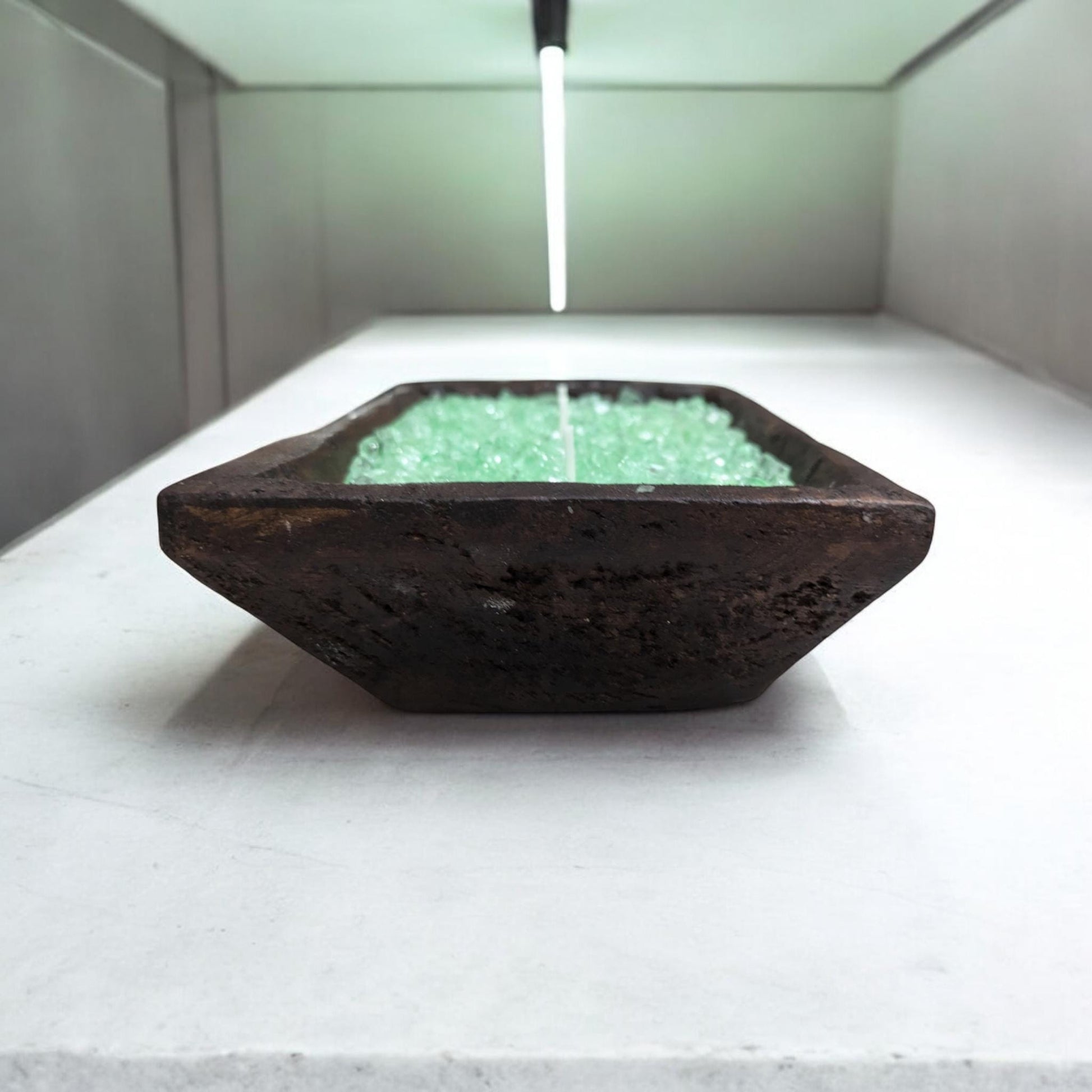 Part of the FIREGLASS collection, it’s ideal for creating atmosphere on tables, vanities, or altars. Once the wax is gone, the bowl becomes a reusable decorative piece, ready to hold trinkets, florals, or more wax.