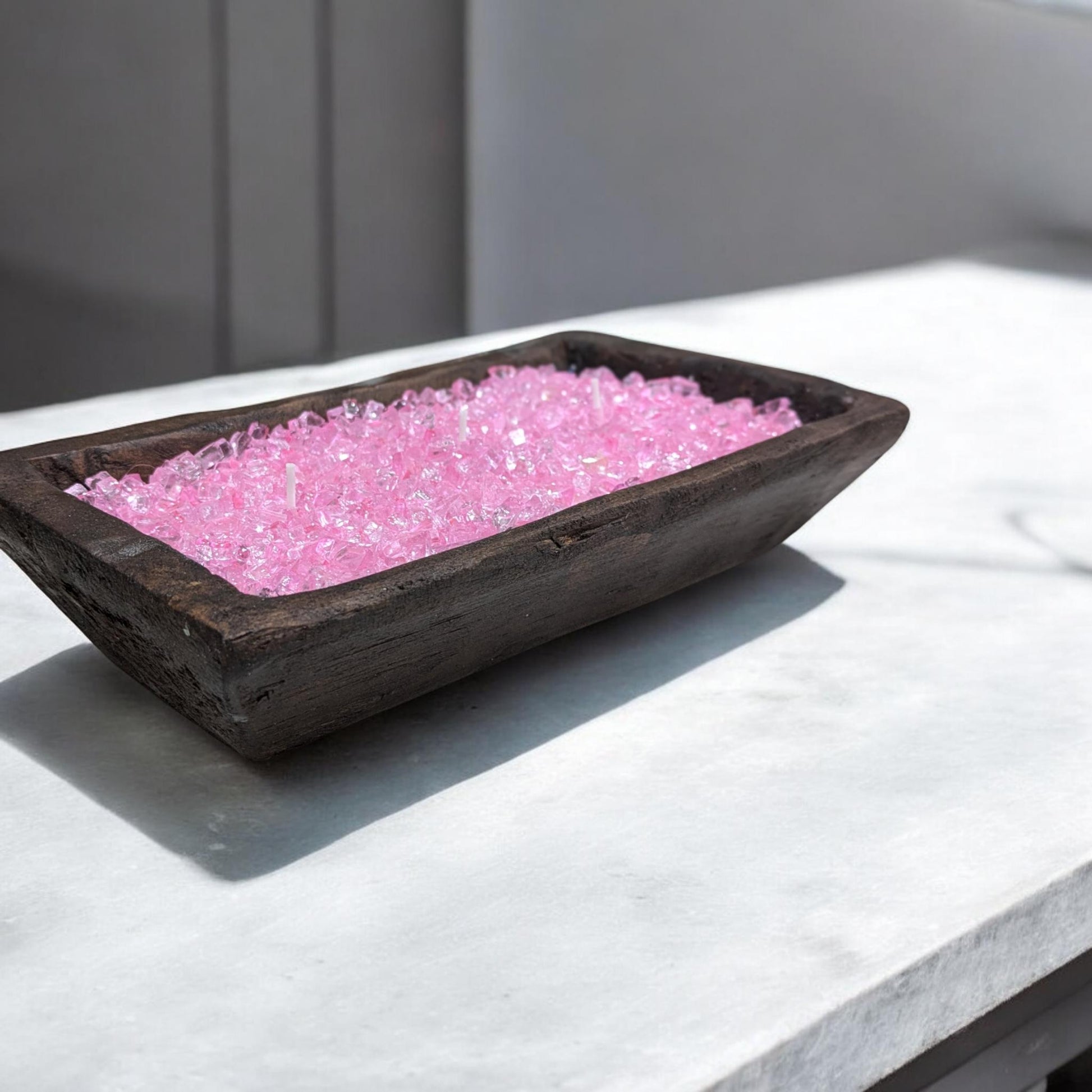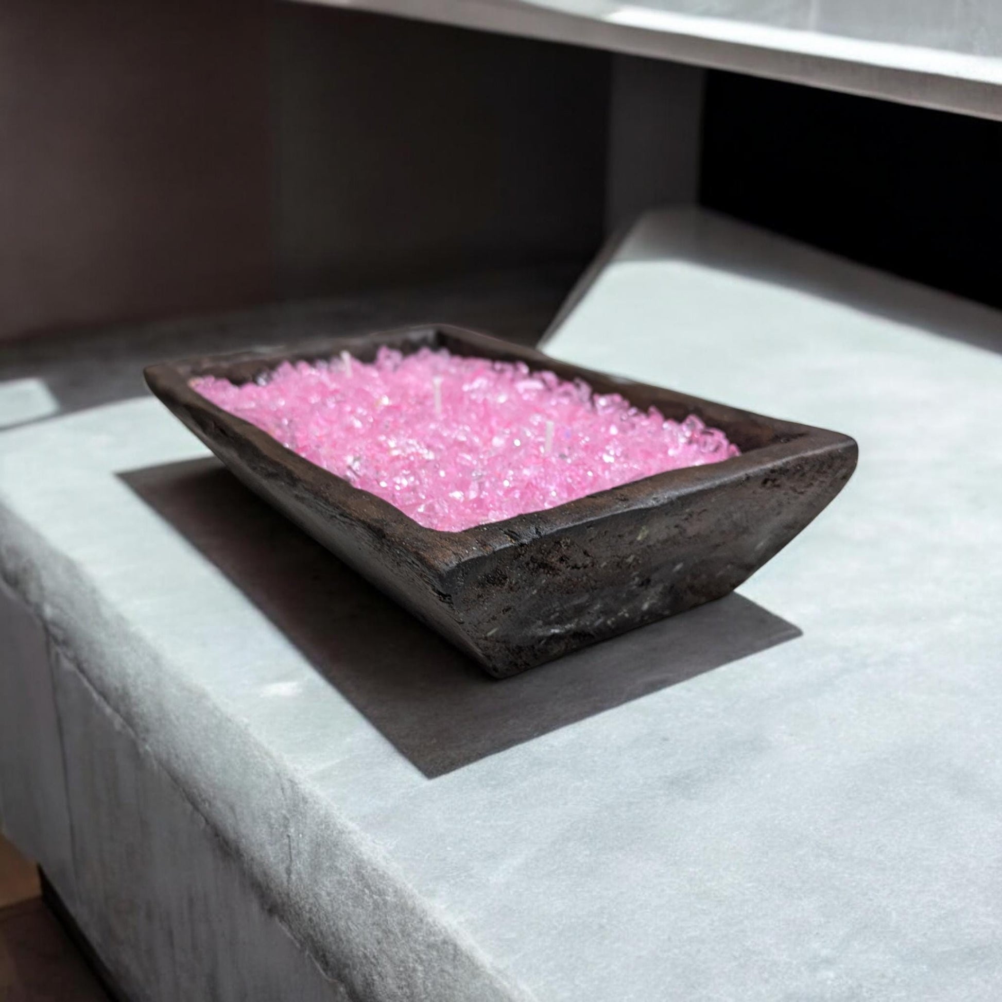 Warm, grounded, and artfully designed — the Aura FIREGLASS BOHO Dough Bowl Candle brings a touch of elemental glow to your space. Poured with 20 oz of clean-burning soy wax into a carved, medium-sized wooden dough bowl, this piece blends rustic charm with boho soul.