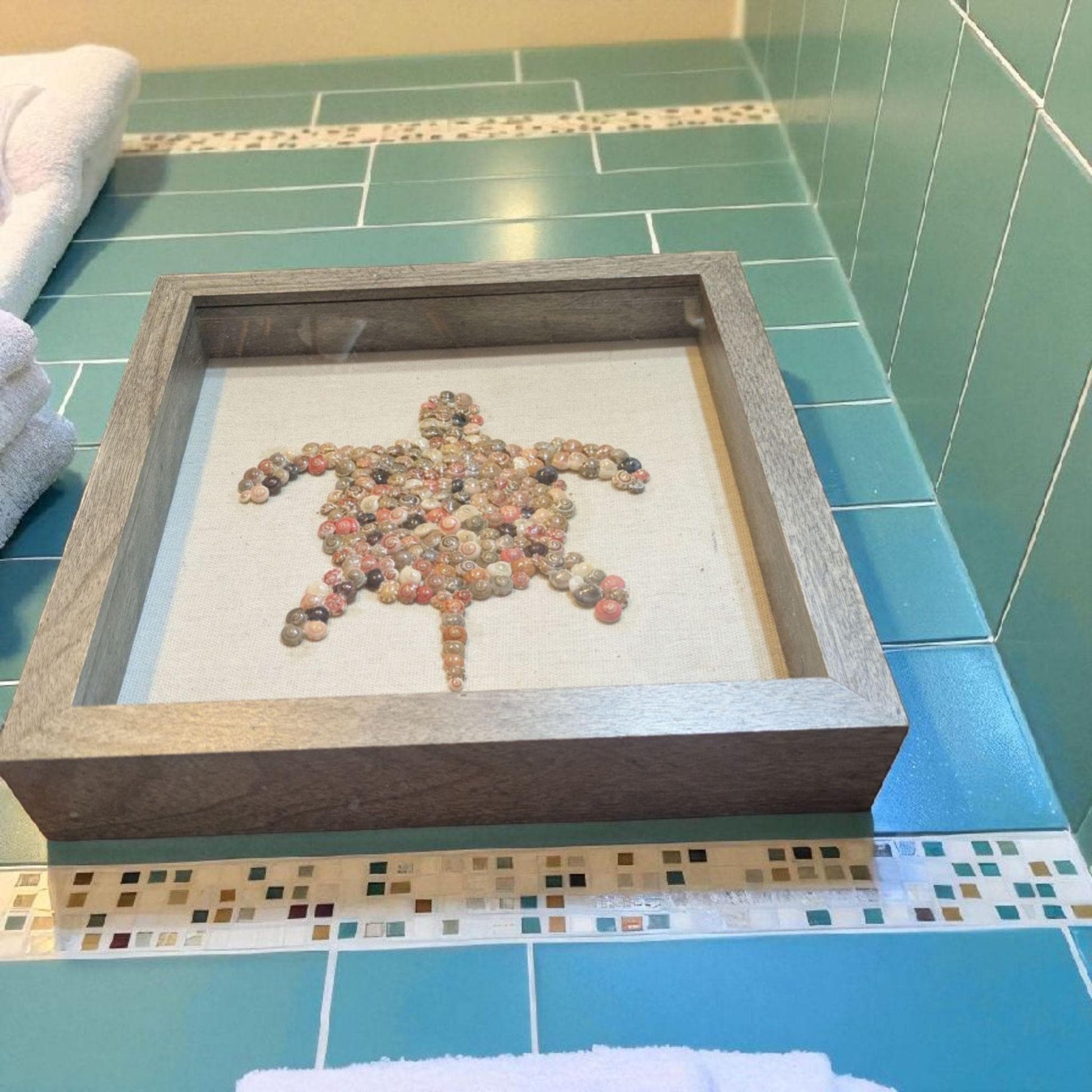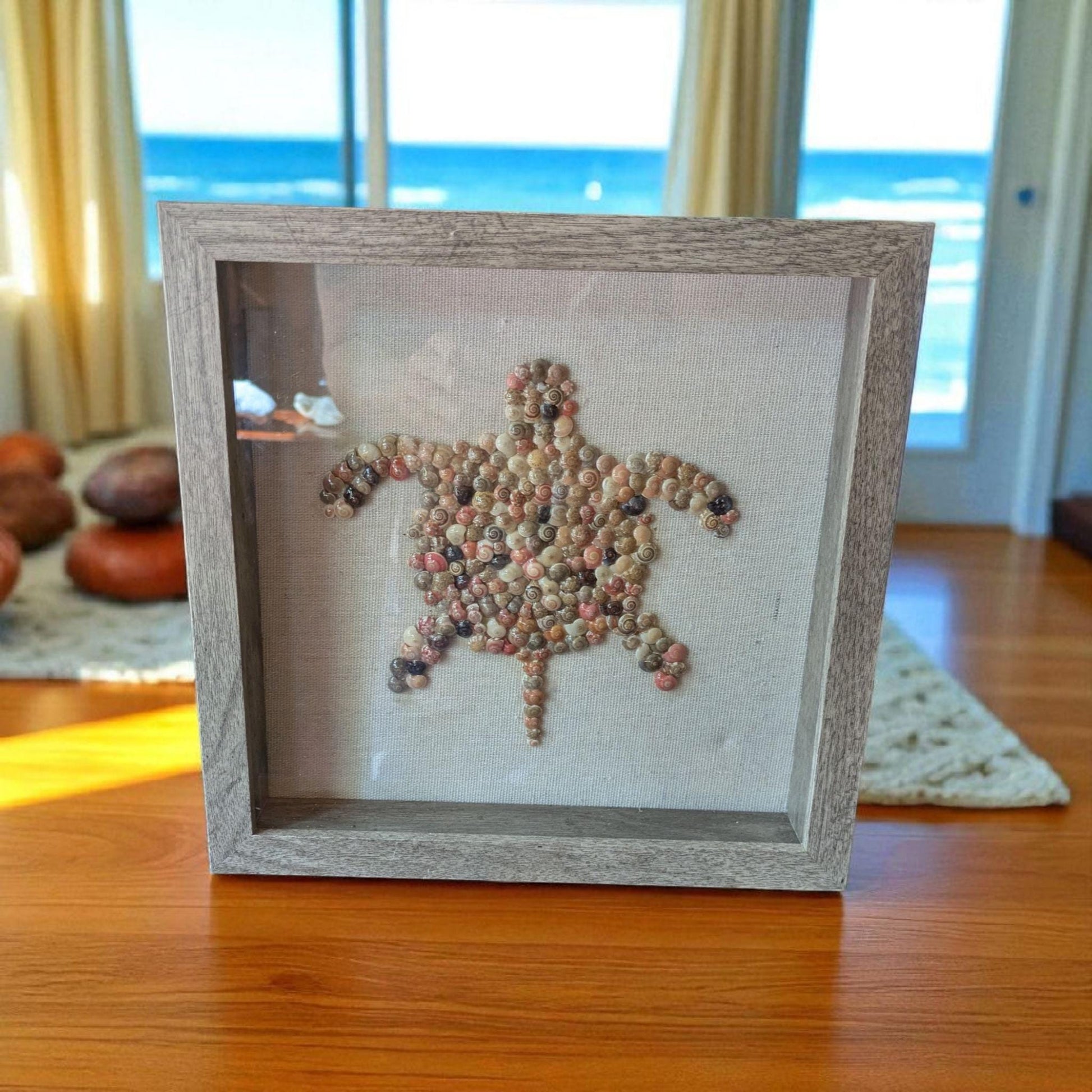 Set in a sleek shadowbox frame, this one-of-a-kind piece fits beautifully in beach homes, boho-inspired interiors, or any space that celebrates nature, calm, and texture.