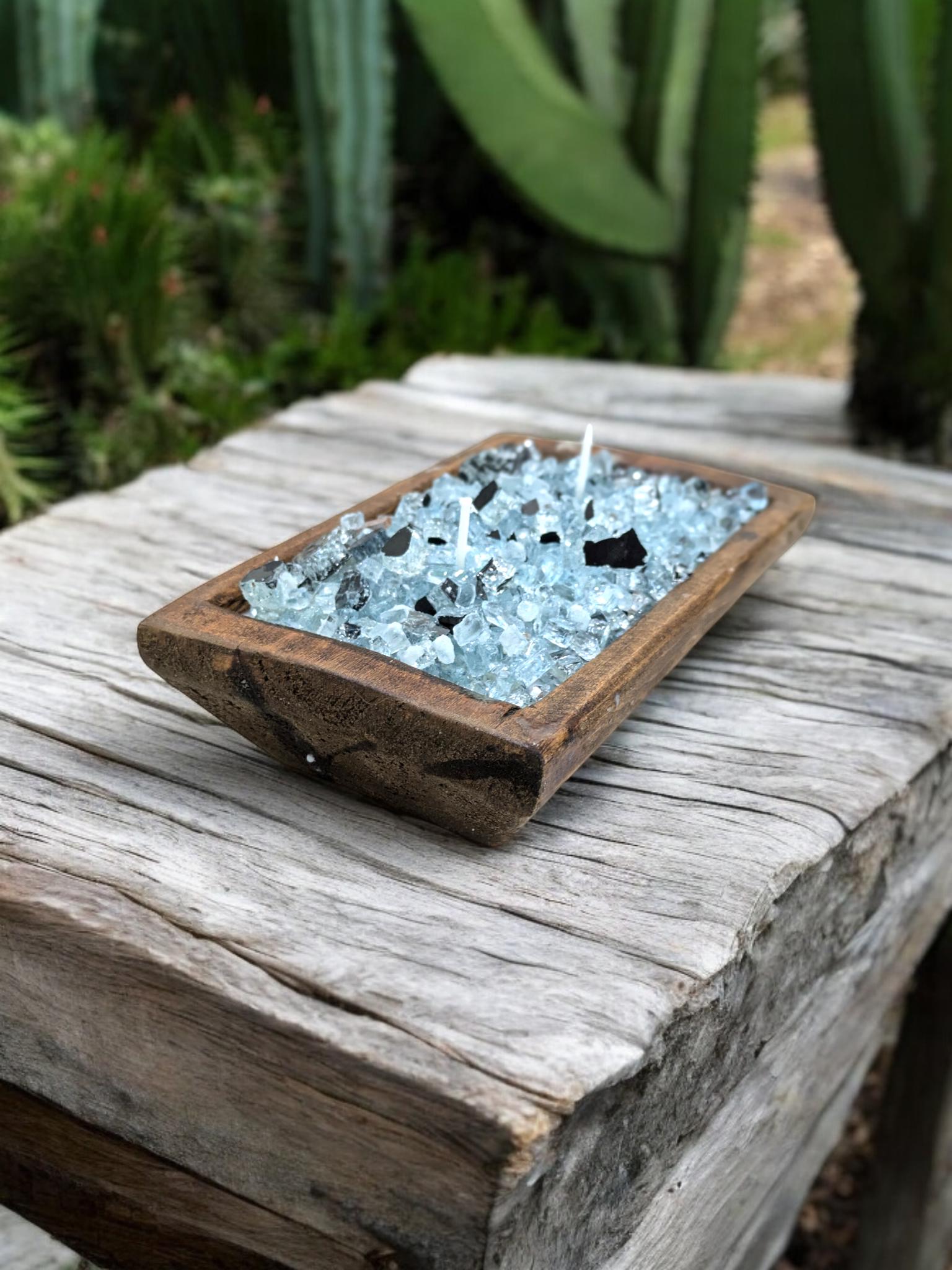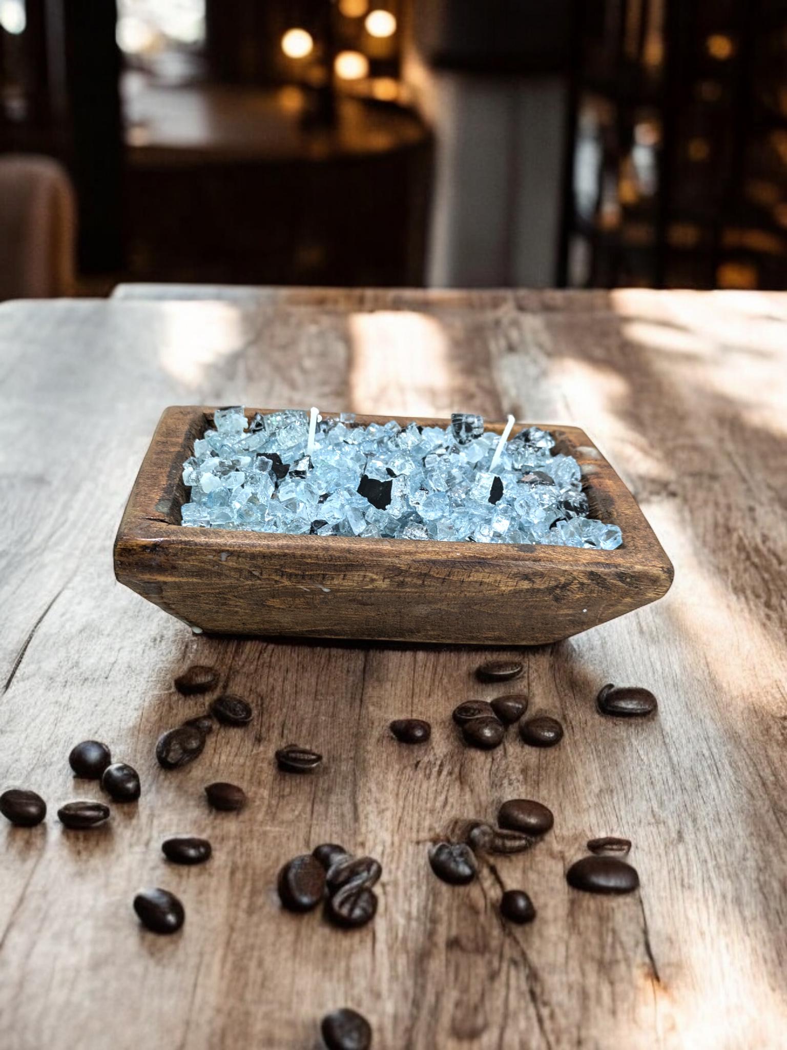 Natural Wood 12 Oz FIREGLASS Small Dough Bowl Candle Natural Soy Wax table decor